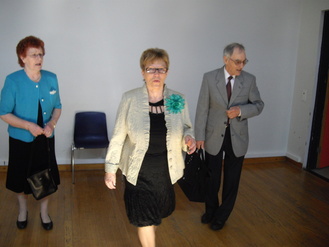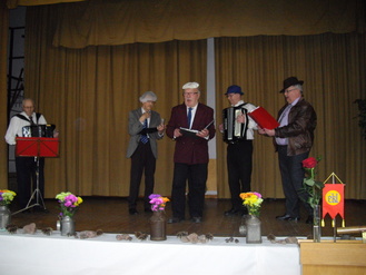 ![]() Raija Viklund lausumassa tertuliaissanoja | ![]() Juhlavieraat kuuntelemassa ja katsomassa esityksiä |